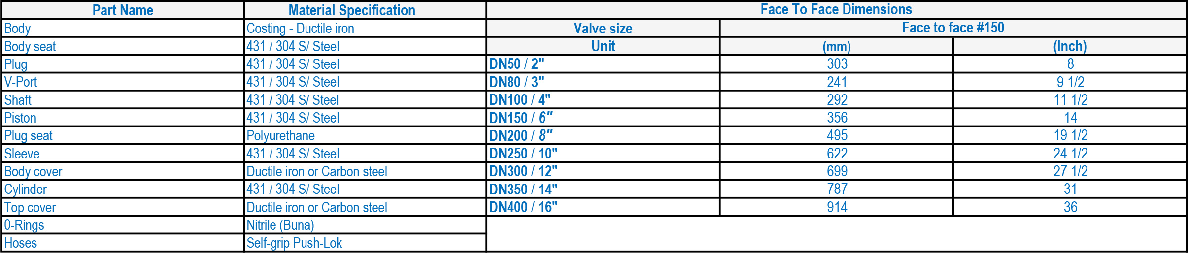 Available sizes: DN50 / 2" to DN400 / 16"
